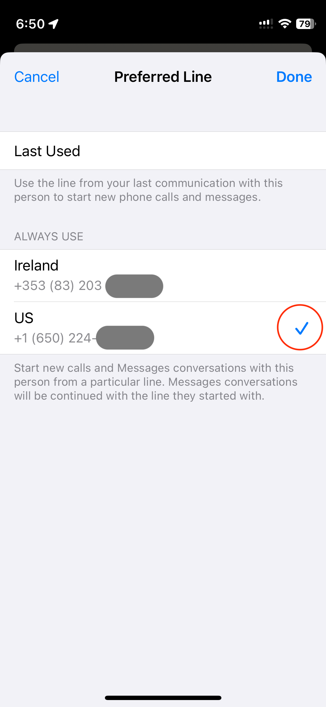 In the Preferred Line page that opens, be sure to select your US line for US contacts and
