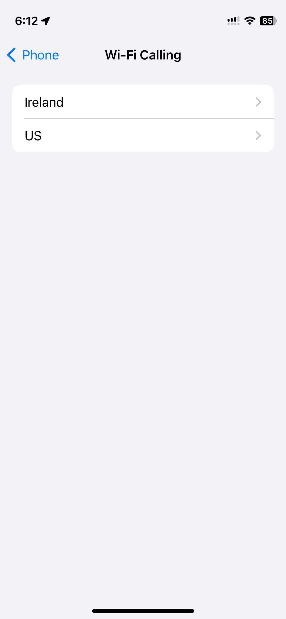 Go to Settings » Phone » Wi-Fi Calling and it will show both lines. We’ll click on the US line.